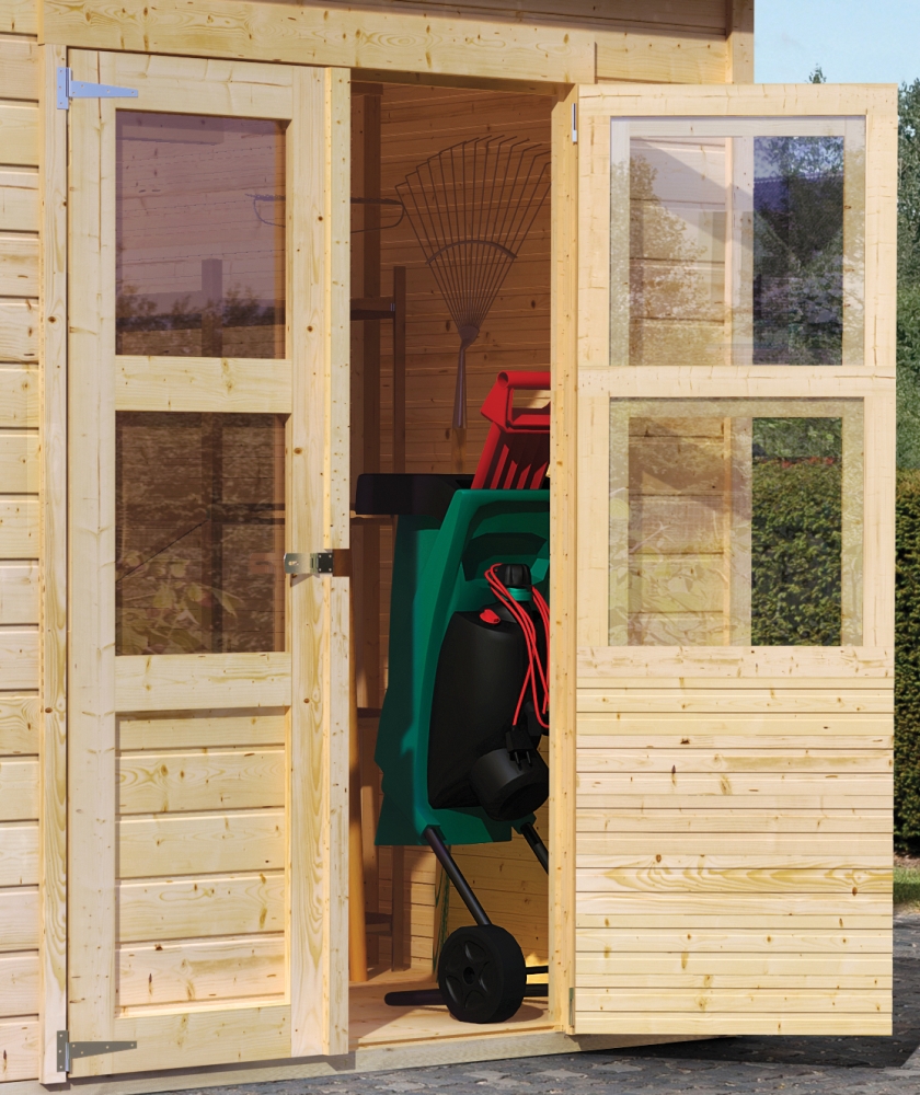 - inkl. Doppeltür & Dachplatten / Holzboden & Dacheindeckung separat erhältlich