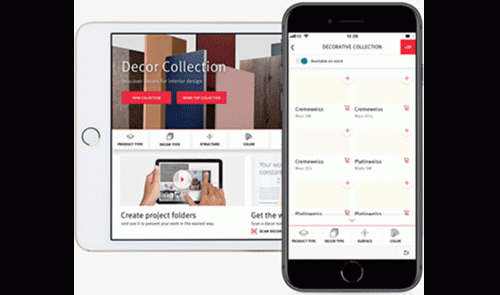 Mit der neu entwickelten App haben Sie die komplette Kollektion Dekoraktiv stets digital griffbereit. Sie unterstützt Sie dabei, Dekore für Ihre Projekte schneller zu finden, Produktinformationen und Verfügbarkeiten in Echtzeit abzurufen und Muster einfacher zu bestellen.