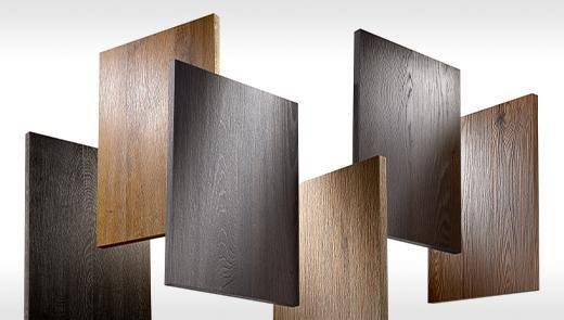 Mit Ihrer Anti-Fingerprint-Eigenschaft liegen die Oberflächen dadurch genau im Trend. Ein Grund mehr sie auch mit farbigem Kern anzubieten. So werden auf Gehrung verarbeitete Fugen und Stoßkanten so nahezu unsichtbar und mit einem Massivholz-Einleimer lässt sich zusätzlich das Design an der Plattenschmalseite hervorheben.