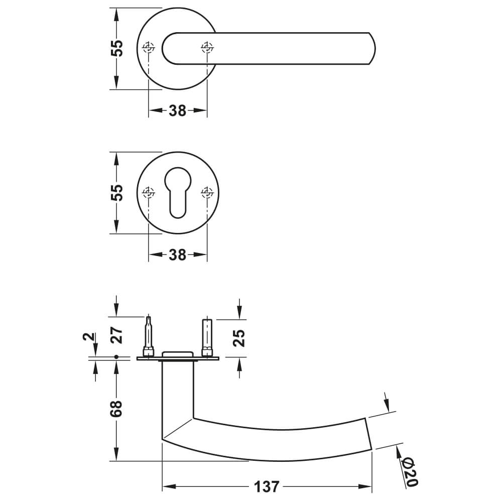 - Edelstahl matt, TS 35-45 mm, VK 8 mm