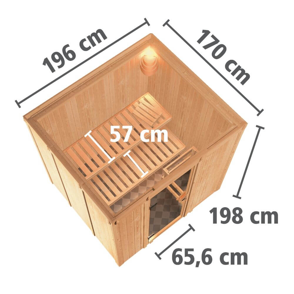 - inkl. 2 Bänke, Ofenschutzgitter & Kopfstütze