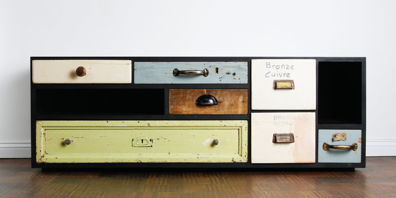 Regelmäßig durchstöbert Franziska Wodicka ihren riesigen Fundus und kombiniert die unterschiedlichsten Holzschubladen miteinander. Sie misst sie aus, zeichnet Entwürfe, verwirft, gestaltet neu – bis alles sitzt.