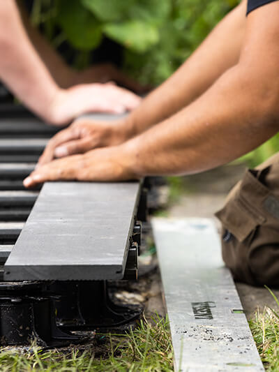 Die Wahl der Unterkonstruktion und der Befestigung bestimmt die Arbeitsschritte zur Vorbereitung und Verlegung. Unser Team berät Sie daher auf Wunsch ausführlich, erklärt Ihnen Unterschiede und gibt Tipps zur späteren Pflege.