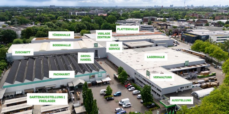 Seit 1968, ganz genau seit dem 22. November, sind wir an unserem Standort am Kronsaalsweg 21 in Hamburg-Stellingen. Seitdem hat das A&J HOLZZENTRUM schon einige Erweiterungen und Umbauten hinter sich.